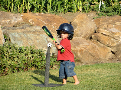 Harrison wants to do everything that Brad and Claire do. He was thoroughly entertained by the bat and Tee. He was so cute trying over and over to hit the ball.